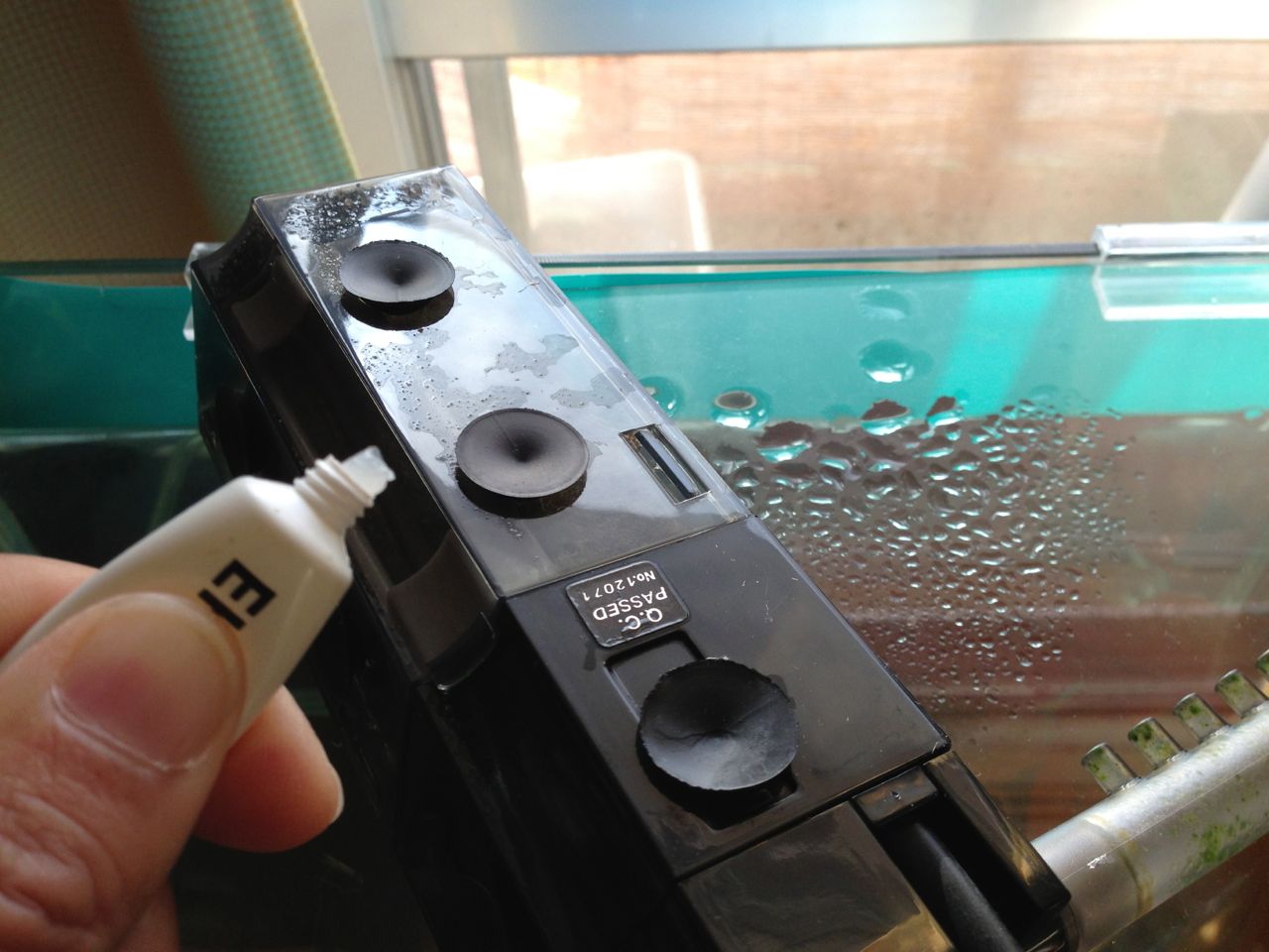 最近、コーナーに設置しているろ過の吸盤がへたってきたので対策しました。